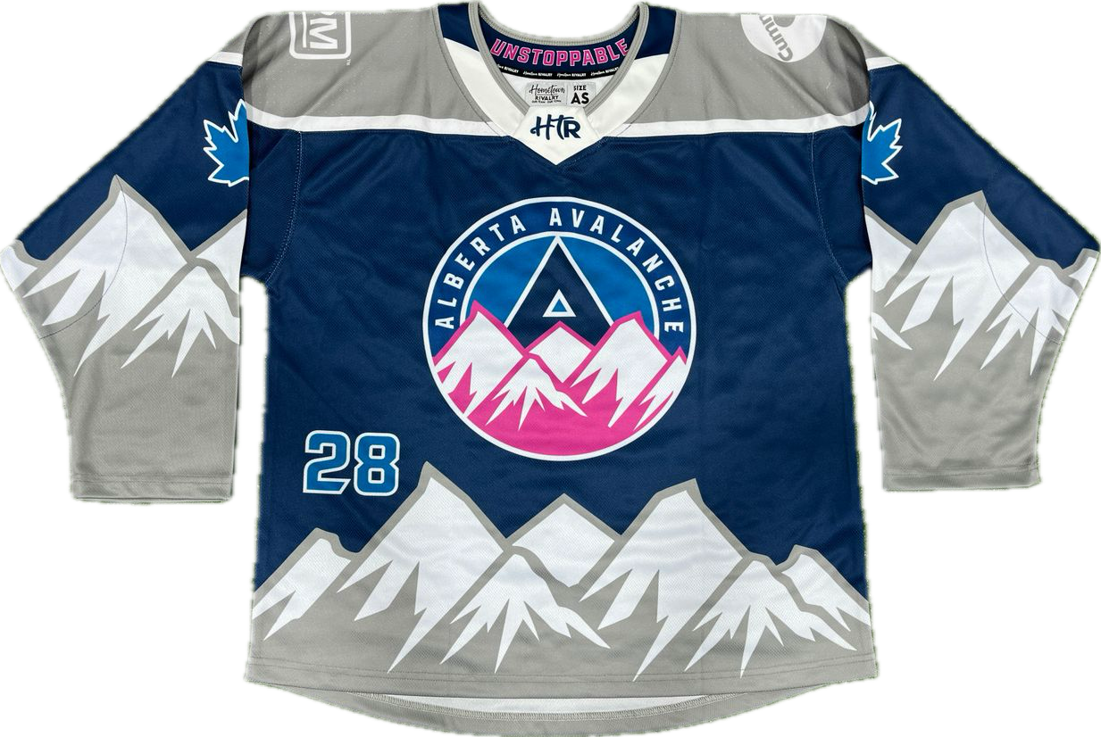 The jersey features a vibrant pink paired with navy and teal and dynamic mountain terrain graphics, blending style and strength. It’s not just a jersey; it’s a statement piece that embodies the spirit of adventure and team pride.